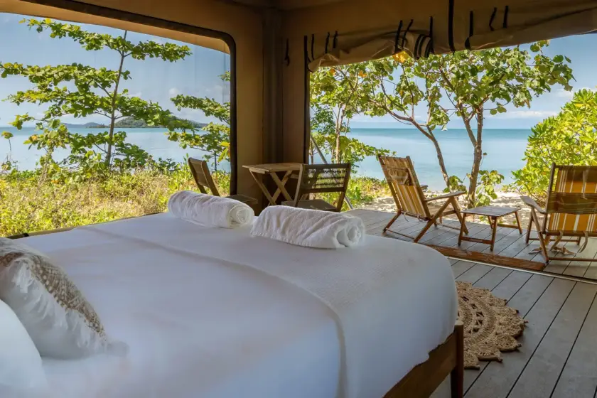 Eco Tents on Dunk Island offer a relaxed camping experience designed to blend seamlessly with the surrounding environment.