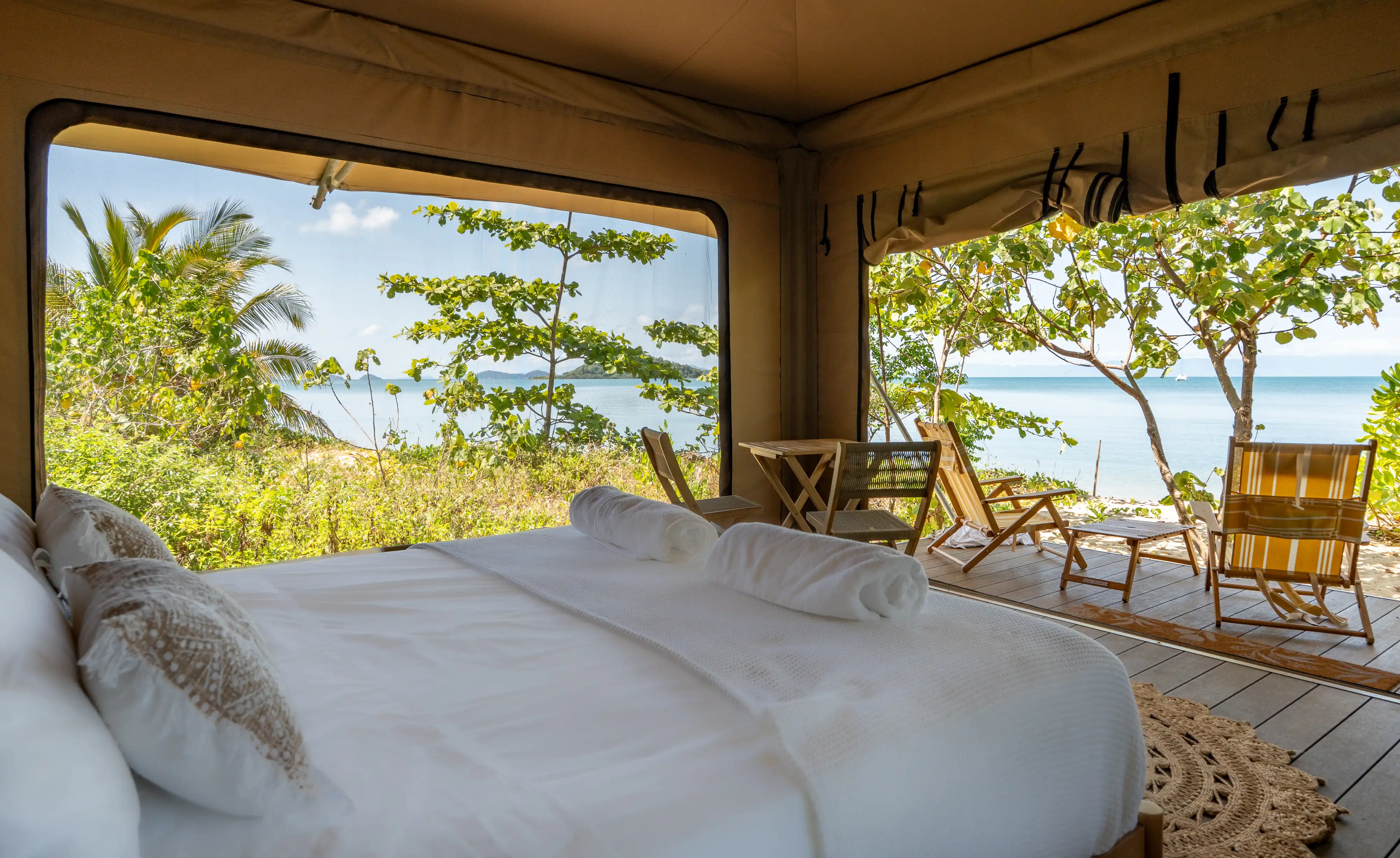 Accommodation at Dunk Island is limited by design, helping protect the island’s natural environment and ensuring every guest has space to breathe. All Eco Tent and campsite bookings are available through our online booking portal.